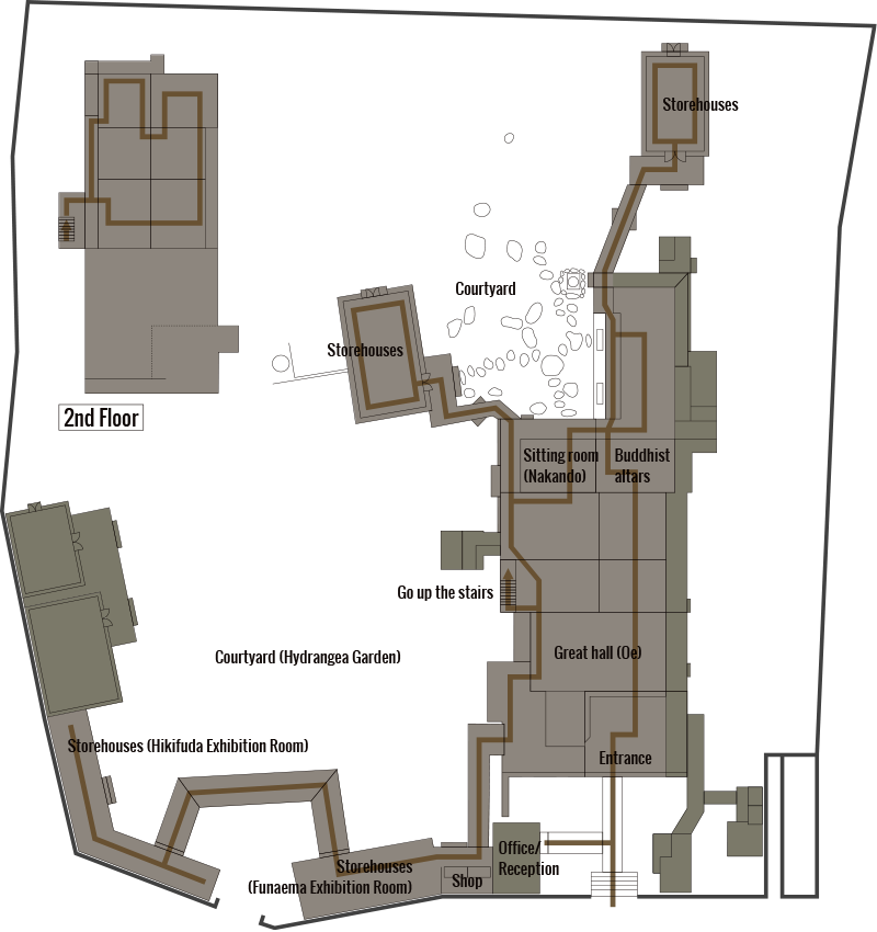 In the mansions of the Kitamaebune shipowners based in Kaga Hashitate, it is customary to place one large and one small splendidBuddhist altar. The small “summer Buddhist altar” is used while the master is away, while the large “winter Buddhist altar” is used in the winter, when he returns. The wall behind the altar is thinner than the other walls to ensure it can be smashed in the event of a fire or other emergency to allow the important Buddhist altars to be retrieved.